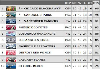 Next up, the Predators don't have a very tough schedule ahead of them, highlighted by three games against St. Louis. But still, stranger things have happened, and if there was a team to fall out of the race at this point it could very well be Nashville.